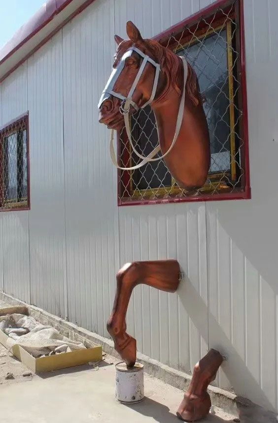 The horse head wall decor is created with half of the body or even less part of the horse as the material. It is installed on the wall as if a horse is passing through the wall. Therefore, it is called the wall-through horse sculpture, which is suitable for installation in restaurants and other places, which is very artistic. The horse sculptures we make have many shapes, so making a half-length horse sculpture is very simple for us, as long as we cut half of it.