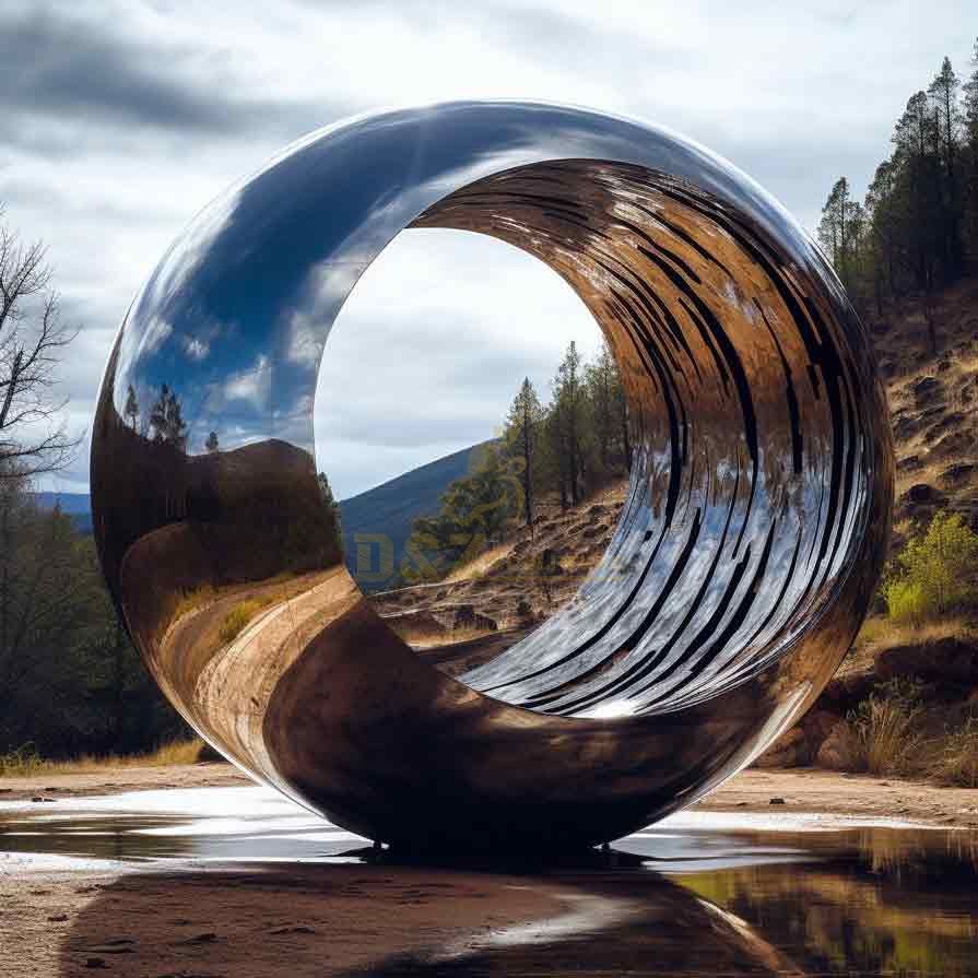 Mirror Effect: The stainless steel material polished to a mirror surface reflects the surrounding scenery and light, enhancing the interactivity and beauty of the sculpture.