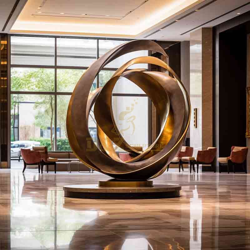 The modern abstract bronze sculpture launched by D&Z Art Sculpture Design adopts non-traditional forms and smooth lines, breaking through the constraints of conventional sculptures. It combines geometric and free-form elements and shows the flexibility and variability of modern art through dynamic modeling. The surface of the sculpture has been finely polished and polished, with a unique luster and texture, which not only shows the natural charm of the bronze material but also creates a high-end and elegant artistic atmosphere for the hotel space.