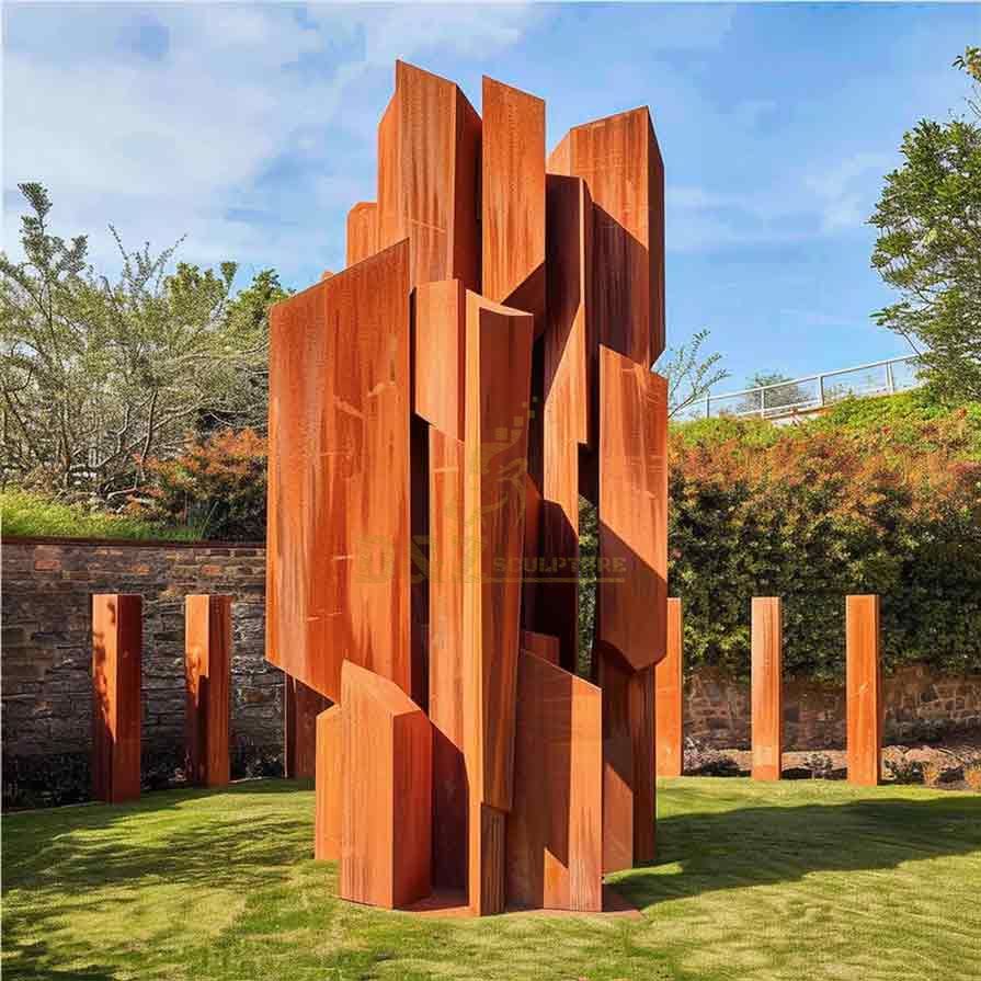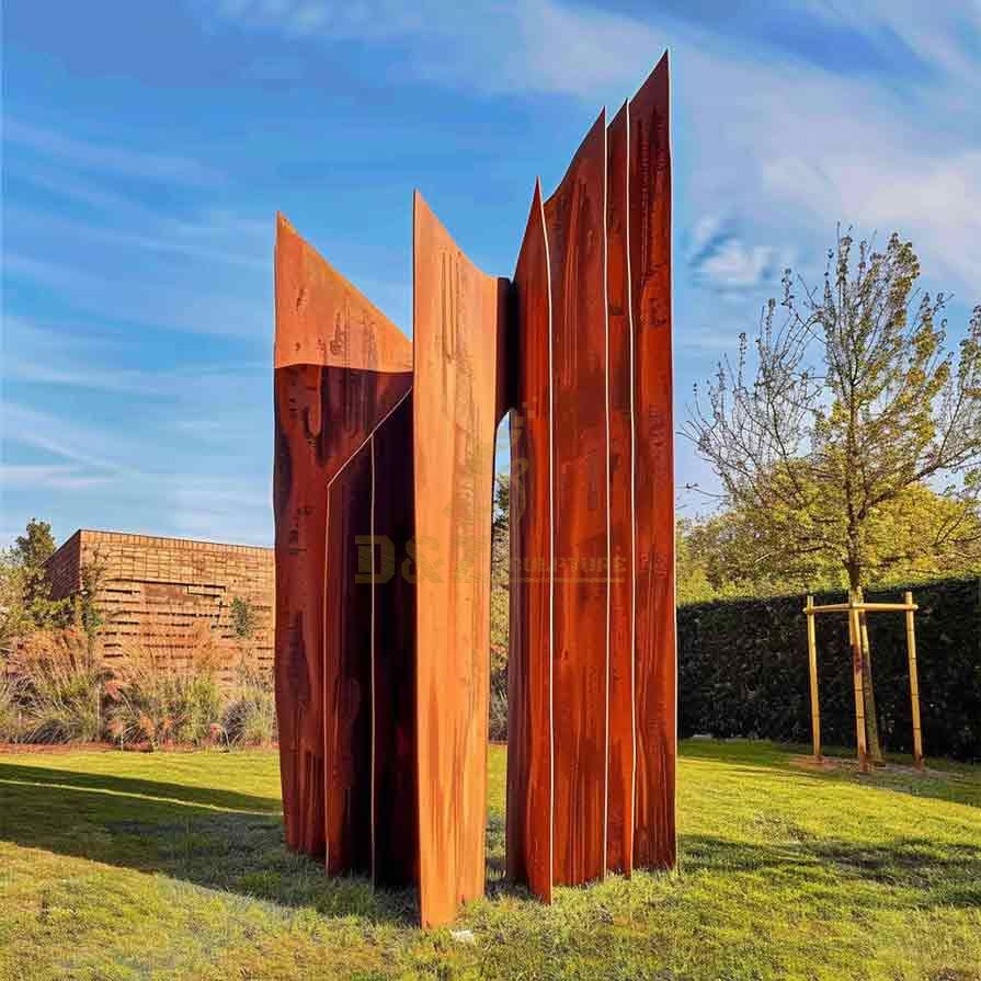 The design inspiration for these large Corten steel garden sculptures comes from the trees and old natural trunks that have experienced wind and rain and vicissitudes of time. Our designers combine modern geometric elements with abstract art techniques to create a tense art form. Corten Steel adds traces of time to garden tree sculptures with its weather resistance and unique rusting effect. The sculpture combines the rigidity of the steel plate with the softness of nature. It adds charm and vitality to modern garden space.
