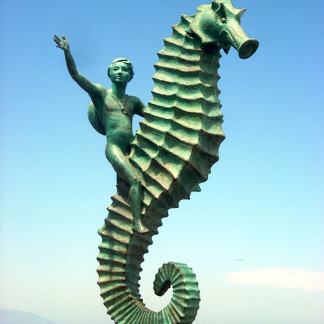 Puerto Vallarta has two icons, which are considered symbols of the city, the Our Lady of Guadalupe Parish and the seahorse sculpture, whose official name is “The Boy on the Sea Horse”. It was a piece that was originally requested in 1960 and there is a larger replica in the city’s downtown area that was unveiled in 1976.