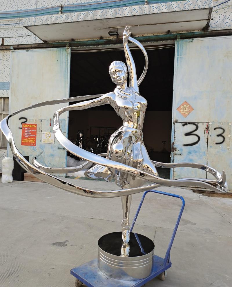 Revel in the uniqueness of our dancing girl sculptures, where the art of dance comes to life in stainless steel. The sculpture shows an elegant dancer whose ribbons have been polished to perfection. The dancers are 2.4 meters tall, and their dynamic postures and flowing ribbons create a captivating visual spectacle that evokes a sense of movement and rhythm. This famous sculpture is a testament to craftsmanship and creativity.