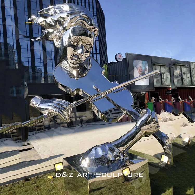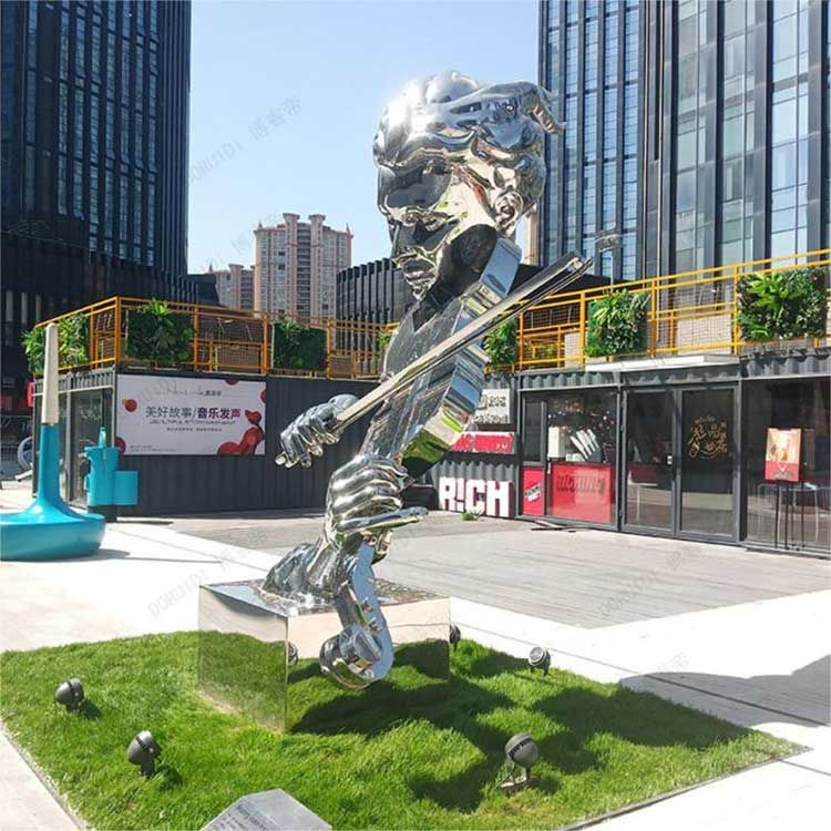 This modern abstract musical art sculpture is made of outdoor mirror stainless steel and perfectly combines modern technology with art. The main body of the sculpture is composed of a violin and a disembodied human figure, presenting a fusion of music and abstract art. The bodyless design further emphasizes the uniqueness of abstract art and gives viewers unlimited space for imagination.