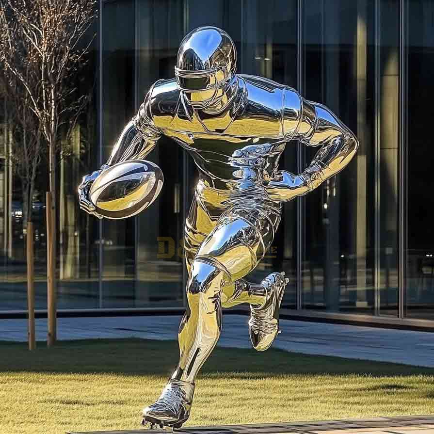 D&Z Art Sculpture launches a series of dynamic and modern customized mirrored stainless steel rugby sculptures. Inspired by the posture of rugby players charging with the ball, the sculptures present the strength and vitality of the athletes fighting forward, combined with a modern abstract art style to show the theme of competition and sports. Supports life-size or large-scale customization, suitable for various places, and becomes a perfect combination of sportsmanship and artistic charm.