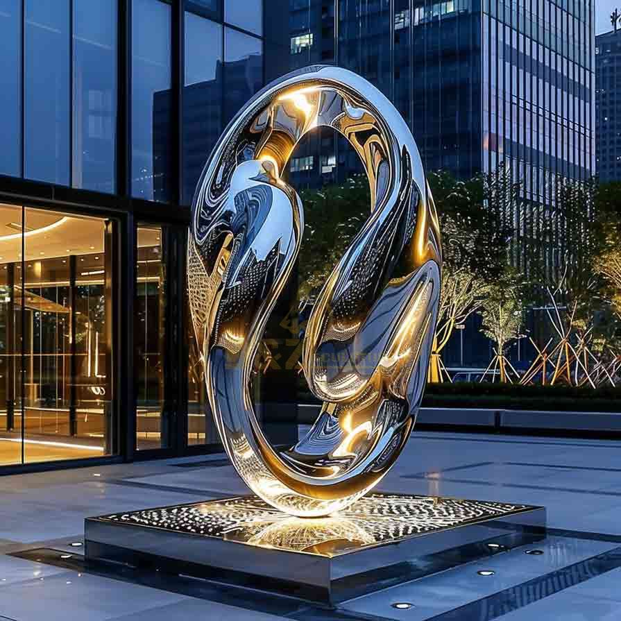 D&Z Art Sculpture creates modern luxury large metal art sculptures, selected 304/316 stainless steel materials, using mirror polishing technology, and matched with LED lighting decoration, presenting simple and elegant lines and smooth curves. The sculpture design is full of modern art atmosphere. It can not only serve as a landmark symbol but also perfectly integrate into high-end commercial and public spaces, reflecting power, elegance, innovation, fashion trends, and brand aesthetics.