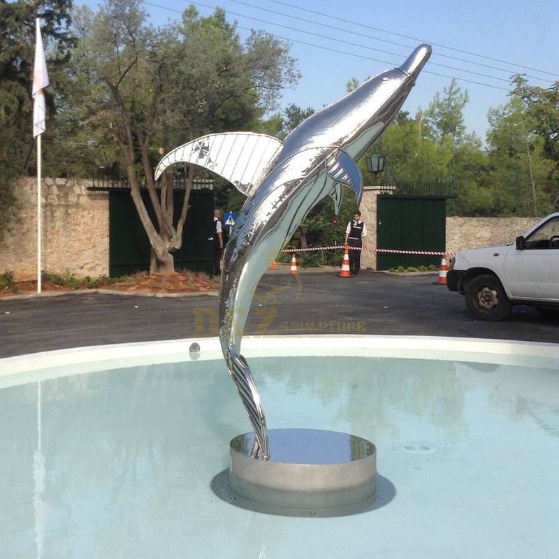 1. Custom mirror polished landscape stainless steel dolphin sculpture
