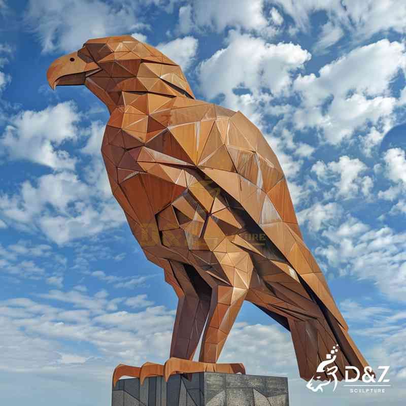 D&Z Art Sculptures | Geometric Corten Steel Falcon Sculptures, Unique Art Decorations for Modern Spaces