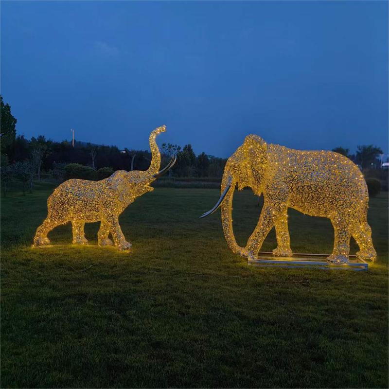 Crafted with precision, our elephant sculptures showcase intricate stainless steel hollow craftsmanship. This innovative technique not only adds a modern touch to the sculptures but also allows for an interplay of light and shadow, creating a dynamic visual experience. The addition of the lighting system adds a sense of mystery and romance to the sculpture. As the light changes, the sculpture emits a charming light, as if an elephant is dancing in the night sky.