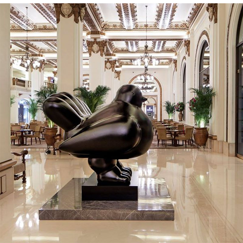 The oversized outdoor bronze fat bird sculpture is from Fernando Botero Angulo Medellín, Colombia, this genius designer, who has designed many amazing sculptures, fat woman sculptures, cat sculptures, Roman warrior sculptures, fat birds sculptrue,hand sculptures, etc.