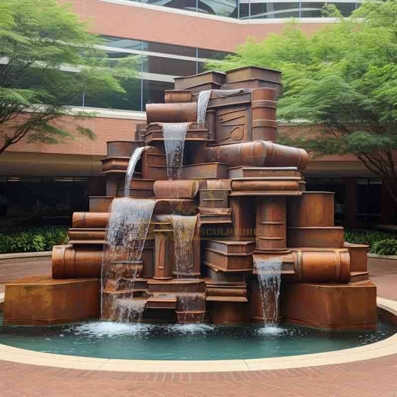 Waterfall fountain design: The multi-level nozzles are staggered, and the water flows like silk, pouring down from the top of the "Book Mountain", forming a beautiful waterfall scene. The sound of water gurgles, adding a touch of vitality and vigor to the environment.