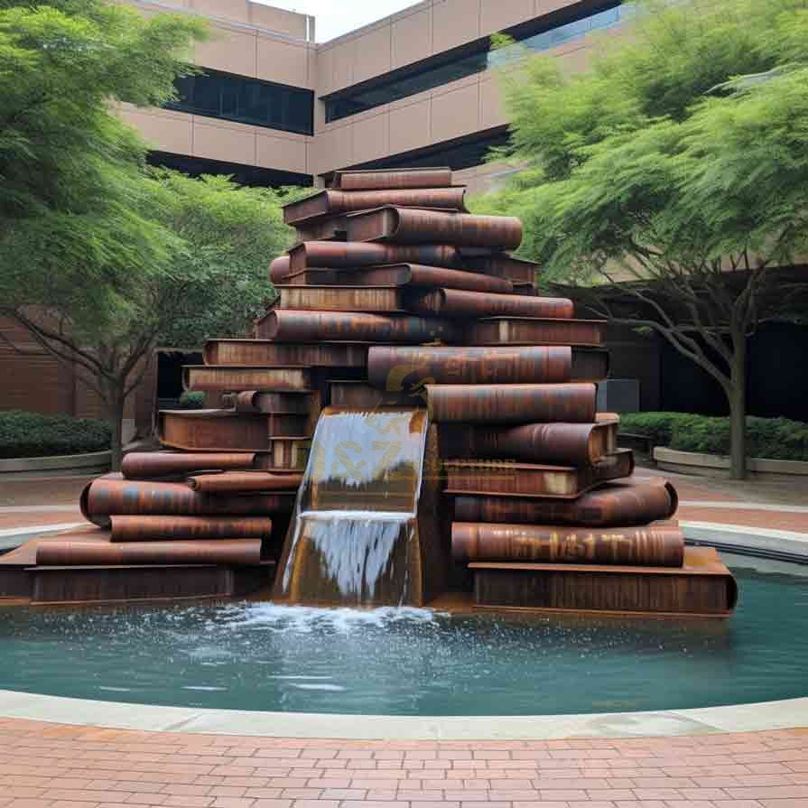 In the bustling city, looking for an oasis of tranquility and wisdom? The mountain-shaped cast bronze waterfall-style book fountain sculpture, with its unique artistic form, perfectly combines the ocean of books with the agility of flowing water, adding an unrepeatable cultural charm to your campus, library, or educational institution.
