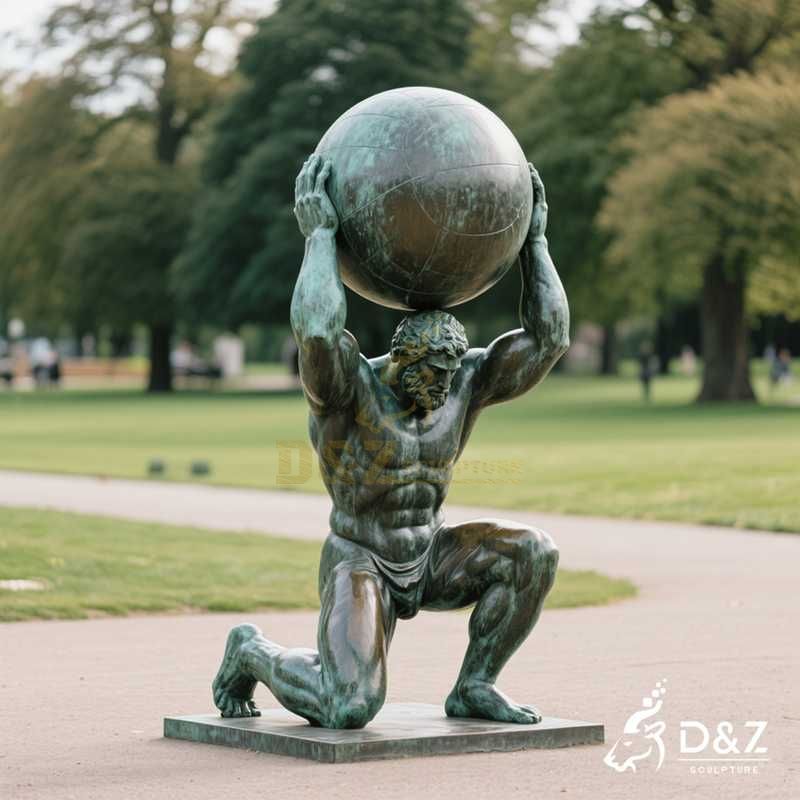 D&Z Art Sculpture, with exquisite craftsmanship, embodies the image of Atlas holding the heavens on his shoulders: kneeling on one knee, his arms supporting the celestial body, as if holding the weight of the entire world in a single moment. If you are interested in this image, please contact us for customization and display options. Let the large bronze Atlas statue holding the world become a concrete artistic expression of mythical power at the intersection of reality and legend.