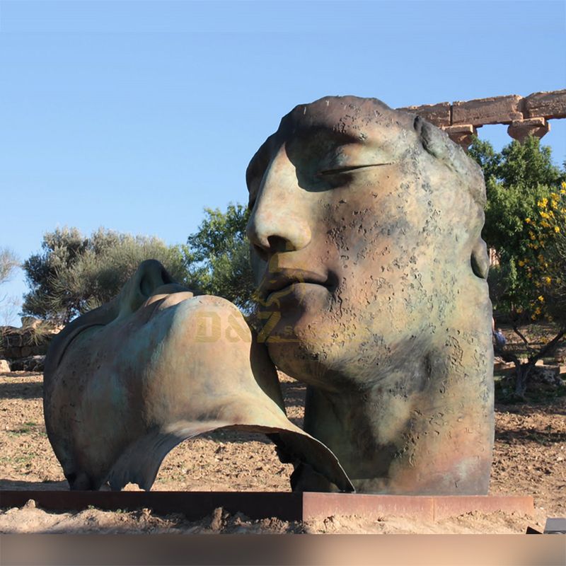 This is a bronze abstract face sculpture. It can be seen that this bronze face sculpture is very artistic, and everyone has a different understanding of this abstract face sculpture. The eyes and nose are made very realistic. Placed outdoors must be very eye-catching.