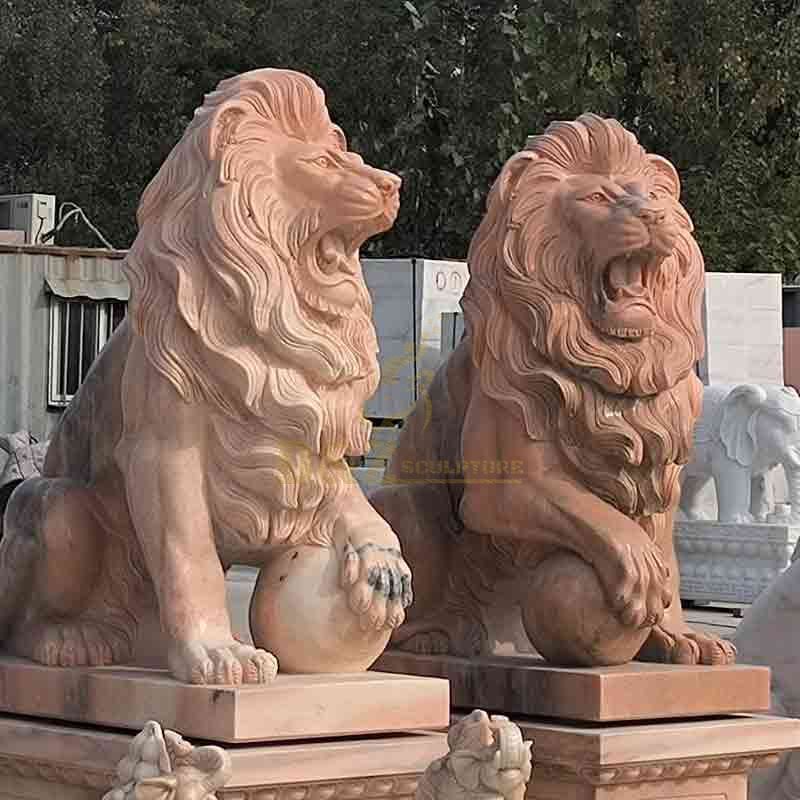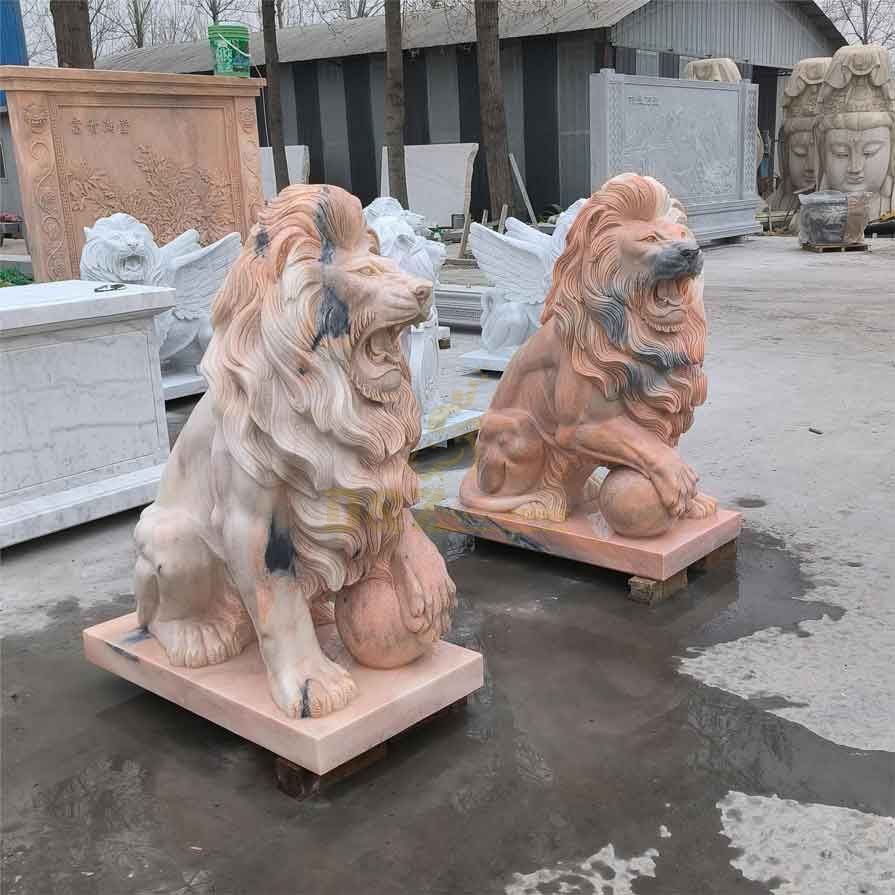 Scene empowerment of sunset red marble lion statues