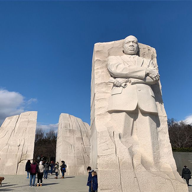 The Martin Luther King, Jr. Memorial is a national memorial located in West Potomac Park next to the National Mall in Washington, D.C., United States. It covers four acres (1.6 ha) and includes the Stone of Hope, a granite statue of Civil Rights Movement leader Martin Luther King Jr. carved by sculptor Lei Yixin. The inspiration for the memorial design is a line from King's "I Have A Dream" speech: "Out of the mountain of despair, a stone of hope."