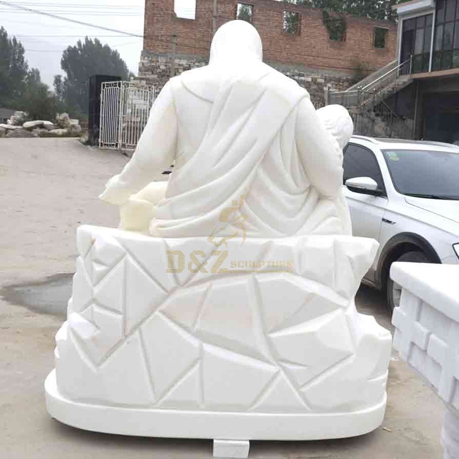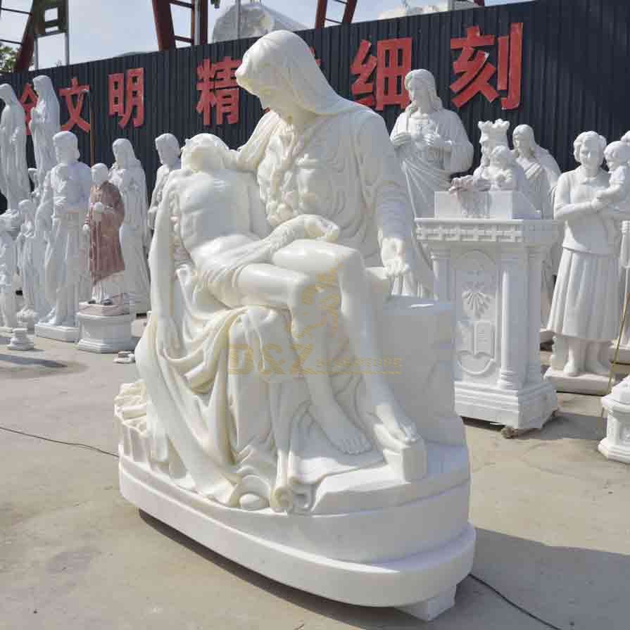 This life-size white marble Virgin Mary holding dead Jesus statue (Pietà) provided by D&Z Art Sculpture is an exquisite religious sculpture that perfectly displays the emotions of holiness and compassion, symbolizing the Virgin Mary's endless love and mourning for Jesus. It is one of the most classic compassion scenes in Christian culture.