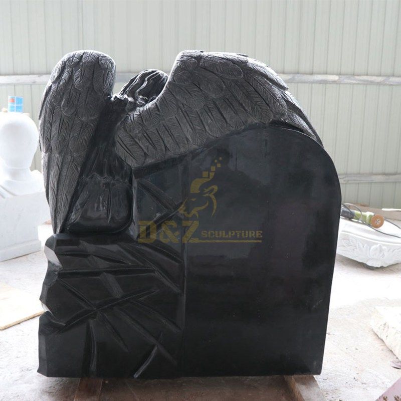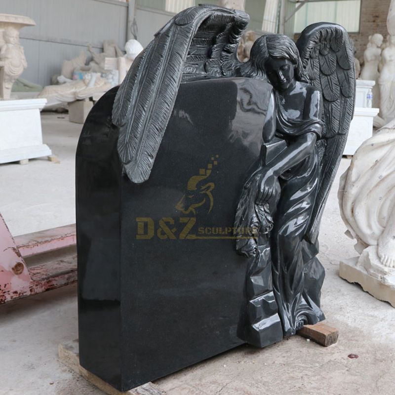 1. Carved Angel Black Granite Tombstone